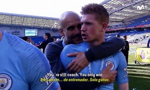 本赛季,曼城取得了前所未有的成功,在英国国内赛场,曼城已经取得了两个冠军,未来他们将冲击英国国内赛事的三连冠。对于曼城的成功,相信很多球迷会道出两个名字,那就是主教练瓜迪奥拉以及球队中场核心球员德布劳内。而在媒体面前,德布劳内也与瓜迪奥拉秀气了“恩爱”来。“他是个狗屎教练,只会赢球。”这位比利时球星在接受媒体的采访时如此评价瓜迪奥拉。